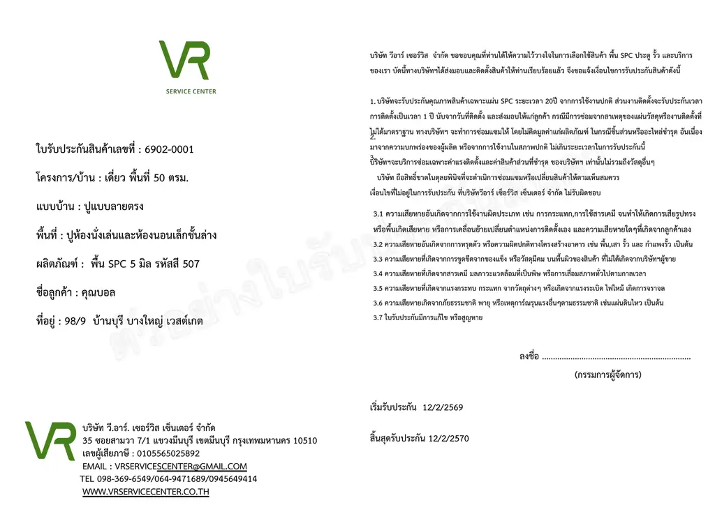 เรามีการรับประกันผลงานติดตั้งนาน 1 ปี คุณจึงมั่นใจได้ว่าจะได้รับการดูแลหลังการขายจากเราอย่างแน่นอน ดูรายละเอียดเพิ่มเติมได้ที่ www.vrservicecenter.co.th/our-work/warranty/ ... See MoreSee Less